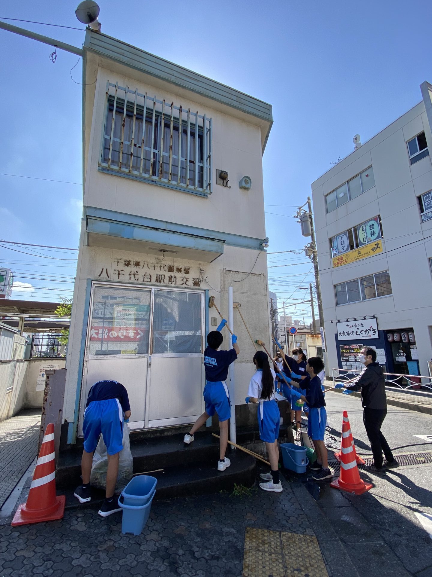 八千代台まちづくり合同会社代表吹上さんのご協力の元みんなで清掃。 @yachiyodaimachizukuri